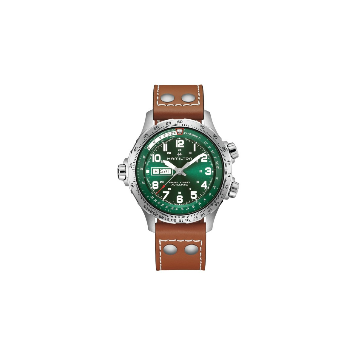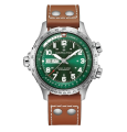 El Khaki Aviation X-Wind, diseñado para los pilotos y creado para la aventura, surca los vientos cruzados con una nueva forma atrevida. Este reloj de alto rendimiento, que luce una impactante esfera verde, bisel giratorio interno y reserva de marcha de 80 horas, está impulsado por nuestro movimiento H-30 y es perfecto para quienes se atreven a explorar las aventuras de la vida con precisión y estilo.
